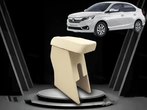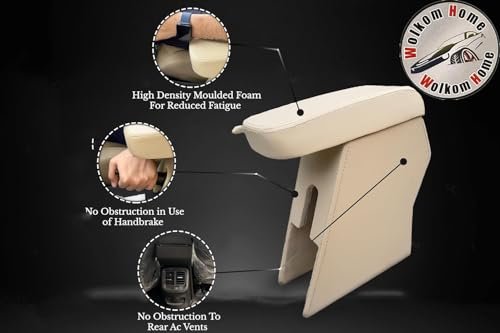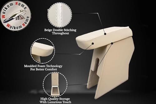 WolkomHome Car Armrest with Storage Box & Soft Cushion Pad Only for Honda Amaze/Luxury Arm Rest Beige Color